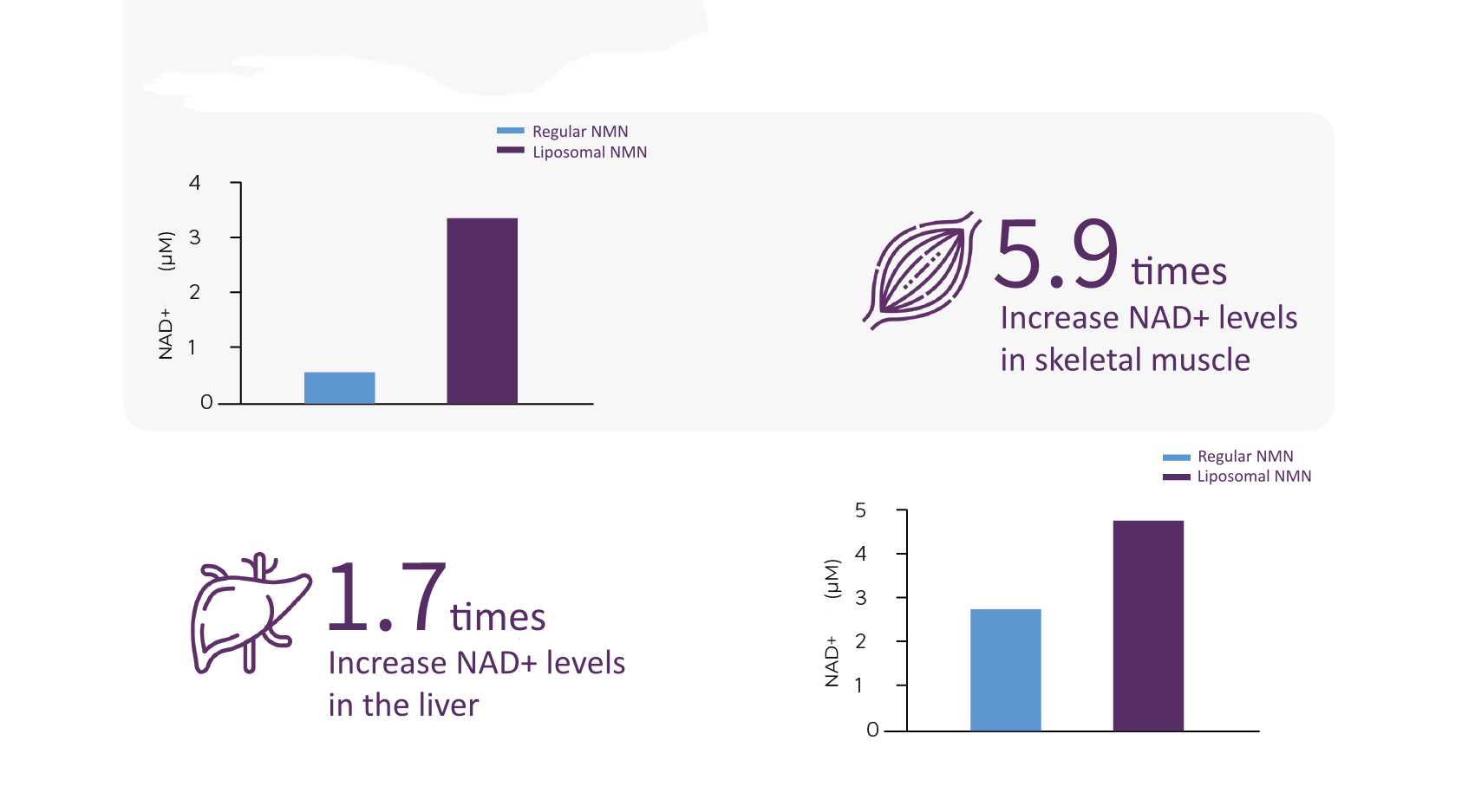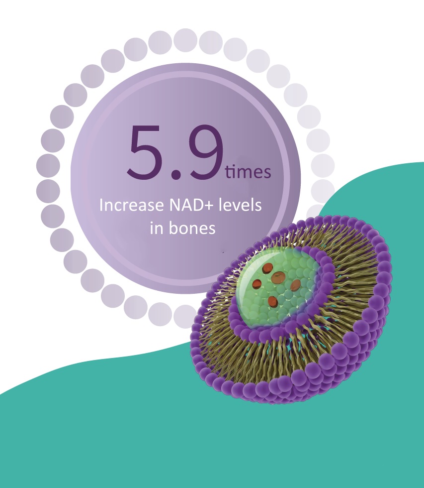 بالمقارنة مع NAD+، يزيد NMN الليبوزومي مستويات NAD+ في العضلات الهيكلية بمقدار 5.9 مرة.