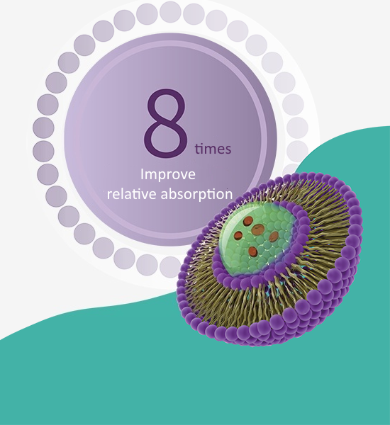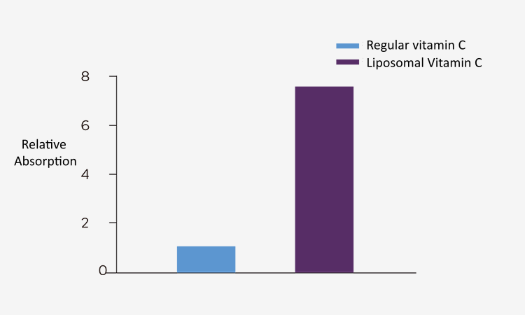 بالمقارنة مع فيتامين C، يتمتع فيتامين C الليبوزومي بامتصاص نسبي أكبر بنحو ثمانية أضعاف.